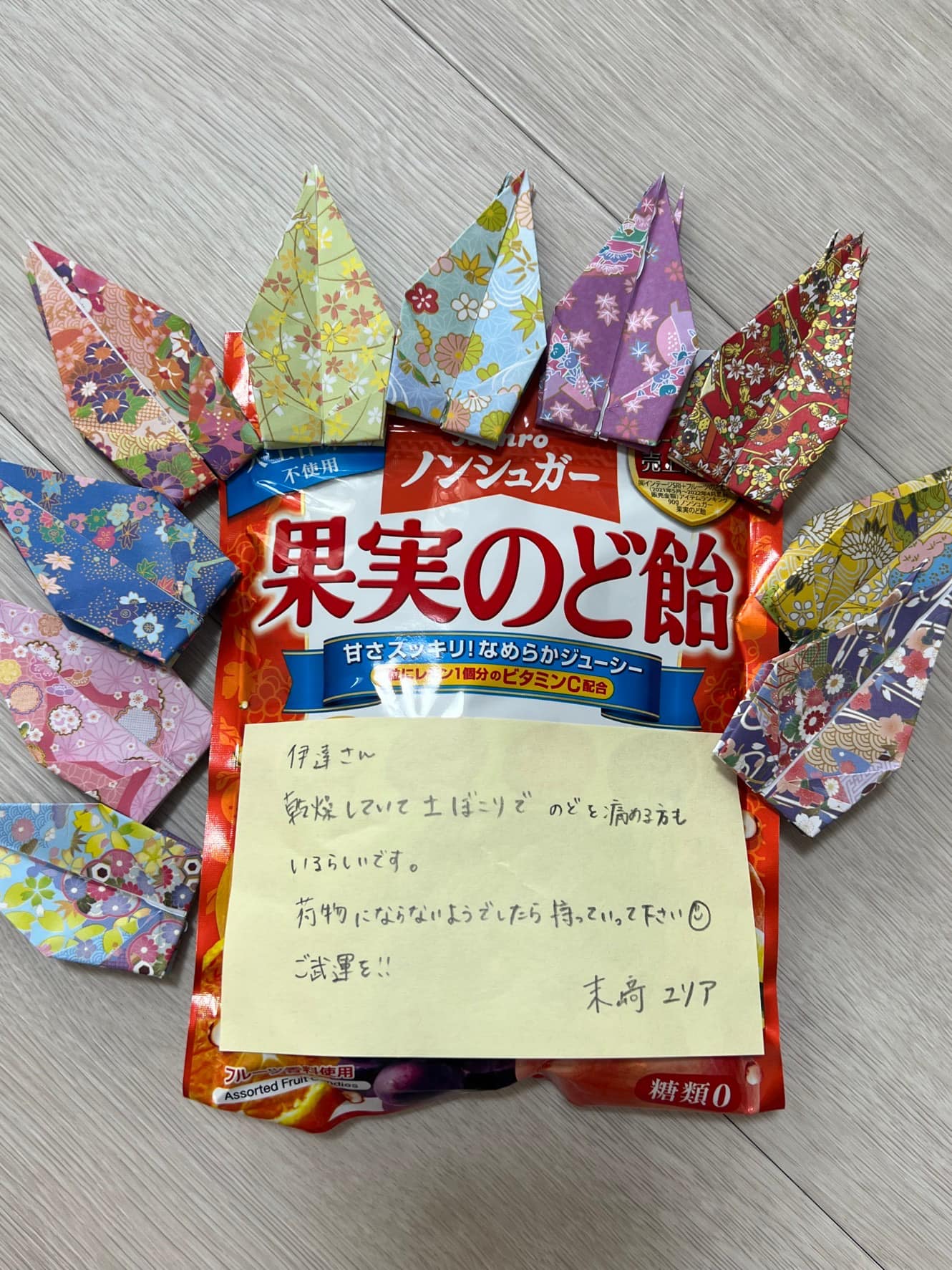 折り鶴を持っていくと