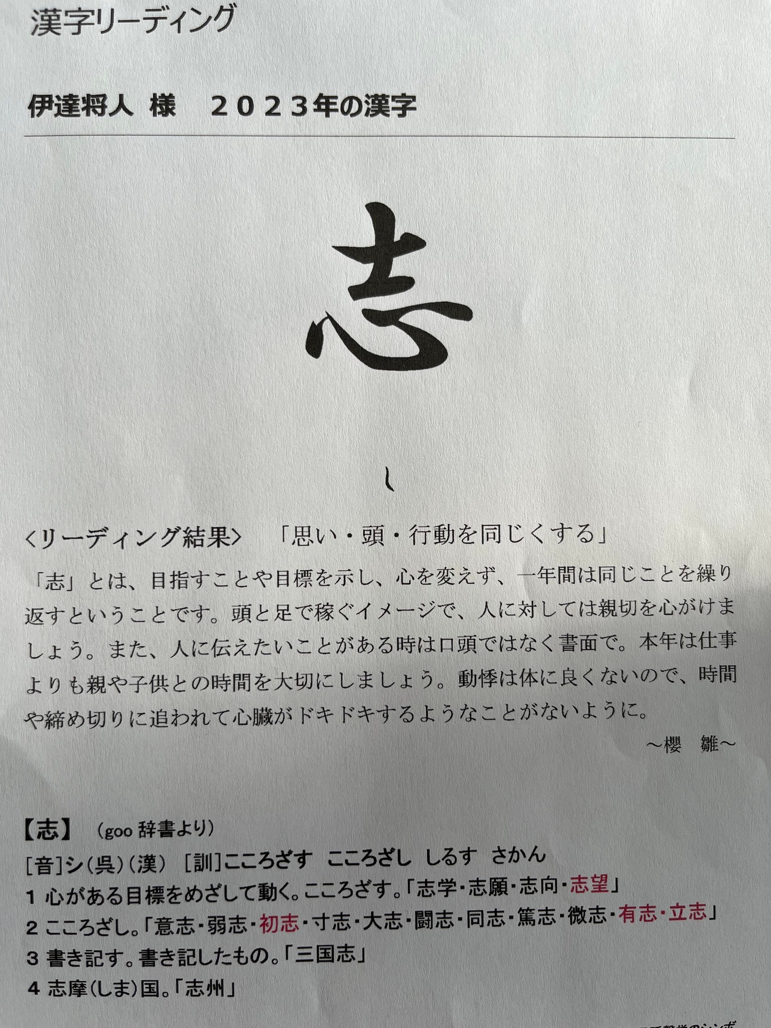 あなたの今年の一字をお伝えします